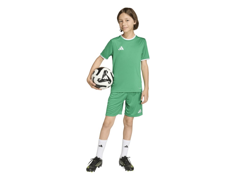 Fotbalové šortky Entrada 26 představují skvělou kombinaci moderního vzhledu a praktických vlastností. Minimalistický design doplňuje nabídka velikostí i pro vyšší postavy, takže vyhovují hráčům všech výkonnostních úrovní. Můžeš se naplno soustředit na hru díky lehkému interlokovému úpletu a pokročilé technologii Climacool, která efektivně odvádí pot a pomáhá udržet tělo v suchu a příjemném chladu.