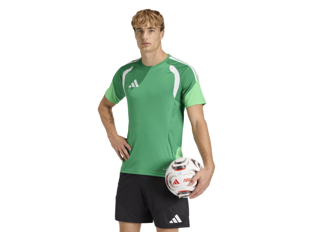 Tento tréninkový dres s krátkým rukávem adidas Tiro 26 Competition Jersey má přiléhavý střih, který tě nebude omezovat v pohybu. Reliéfní designové prvky a síťované panely na hrudi zajišťují lepší ventilaci, zatímco savý a rychleschnoucí materiál s technologií climacool účinně odvádí pot a udrží tě v suchu i při intenzním tempu. Dres tak spojuje funkčnost, moderní vzhled a kvalitu typickou pro adidas a je ideální volbou pro fotbalisty, kteří chtějí zůstat soustředění a připravení na vítězství.