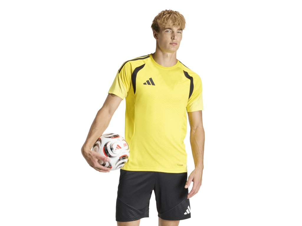 Tento tréninkový dres s krátkým rukávem adidas Tiro 26 Competition Jersey má přiléhavý střih, který tě nebude omezovat v pohybu. Reliéfní designové prvky a síťované panely na hrudi zajišťují lepší ventilaci, zatímco savý a rychleschnoucí materiál s technologií climacool účinně odvádí pot a udrží tě v suchu i při intenzním tempu. Dres tak spojuje funkčnost, moderní vzhled a kvalitu typickou pro adidas a je ideální volbou pro fotbalisty, kteří chtějí zůstat soustředění a připravení na vítězství.