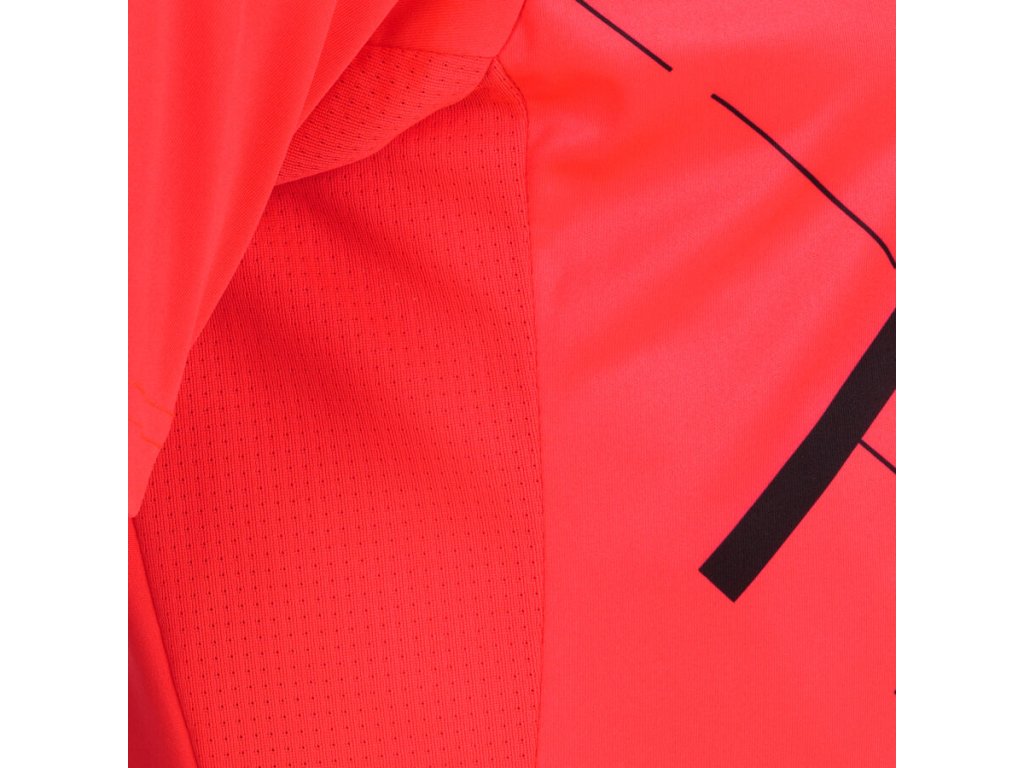 Dres vyrobený ze 100% polyester interlock. Velice příjemný na tělo. Zahrnuje Mesh technologie podpaží ke zlepšení prodyšnosti. Suchým MX, což je technologie, která je schopna ovládat nadměrné pocení sportovce.