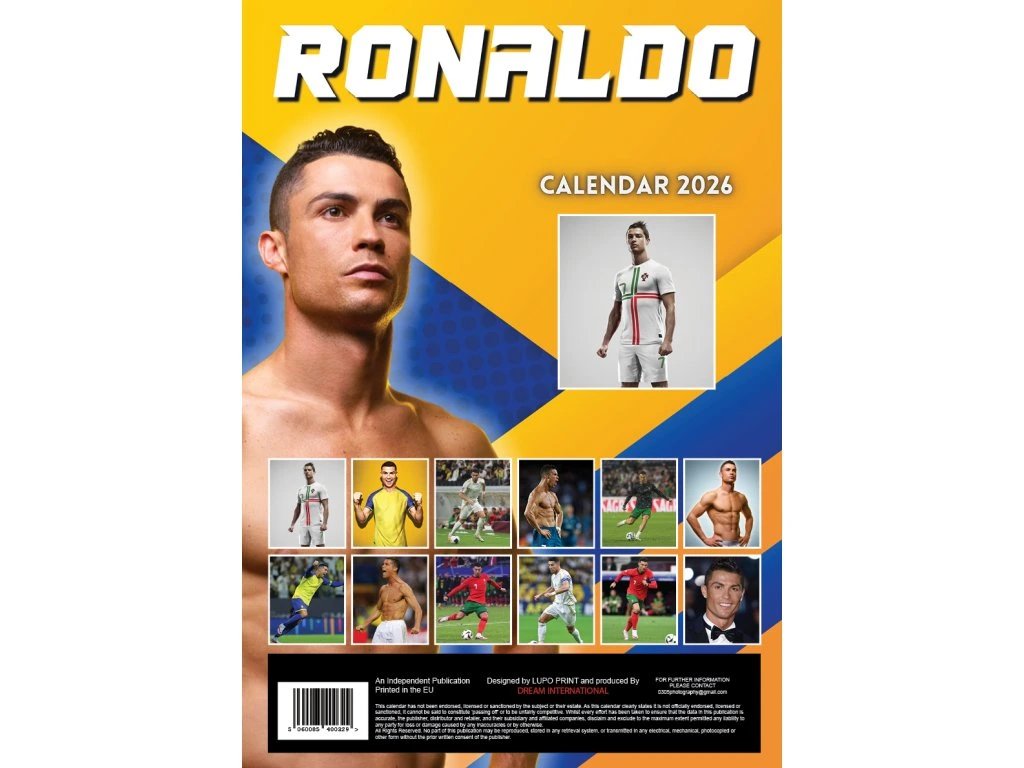 Oficiální produkt - nástěnný dvanáctiměsíční kalendář fotbalisty Cristiana Ronalda na rok 2026.