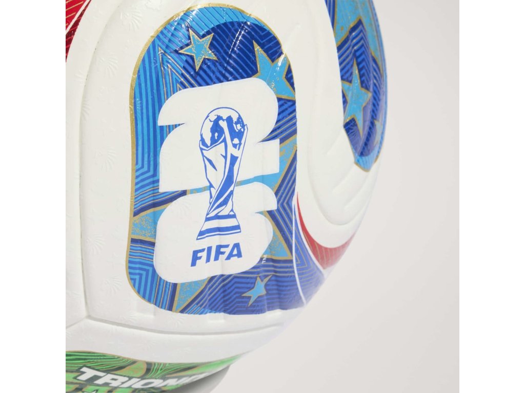 Ikonická vlna „la ola“, velkolepý pohled, poprvé spatřený na sportovních stadionech po celé Americe, inspiruje plynulý čtyřpanelový design tohoto míče adidas Trionda Pro. Oficiální míč mistrovství světa ve fotbale FIFA World Cup 26™ má bezešvý povrch s výraznou texturou a strategicky umístěným prolisováním pro optimální přesnost a stabilitu za letu. Zářivé barvy a výrazné národní symboly představují tři hostitelské země turnaje. Jedná se o oficiální míč mistrovství světa.