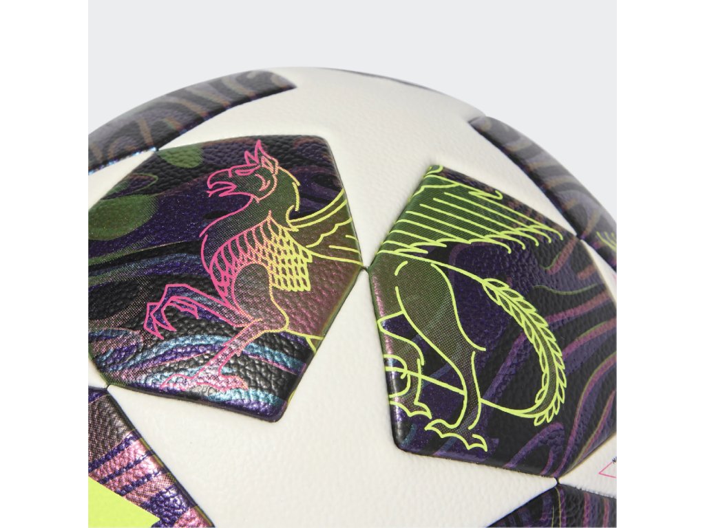 Míč UEFA Champions League Final Competition je navržený pro maximální přesnost a výkon na hřišti. Díky nejvyšší certifikaci FIFA Quality Pro splňuje přísné testy hmotnosti, absorpce vody, tvaru a stálosti velikosti.