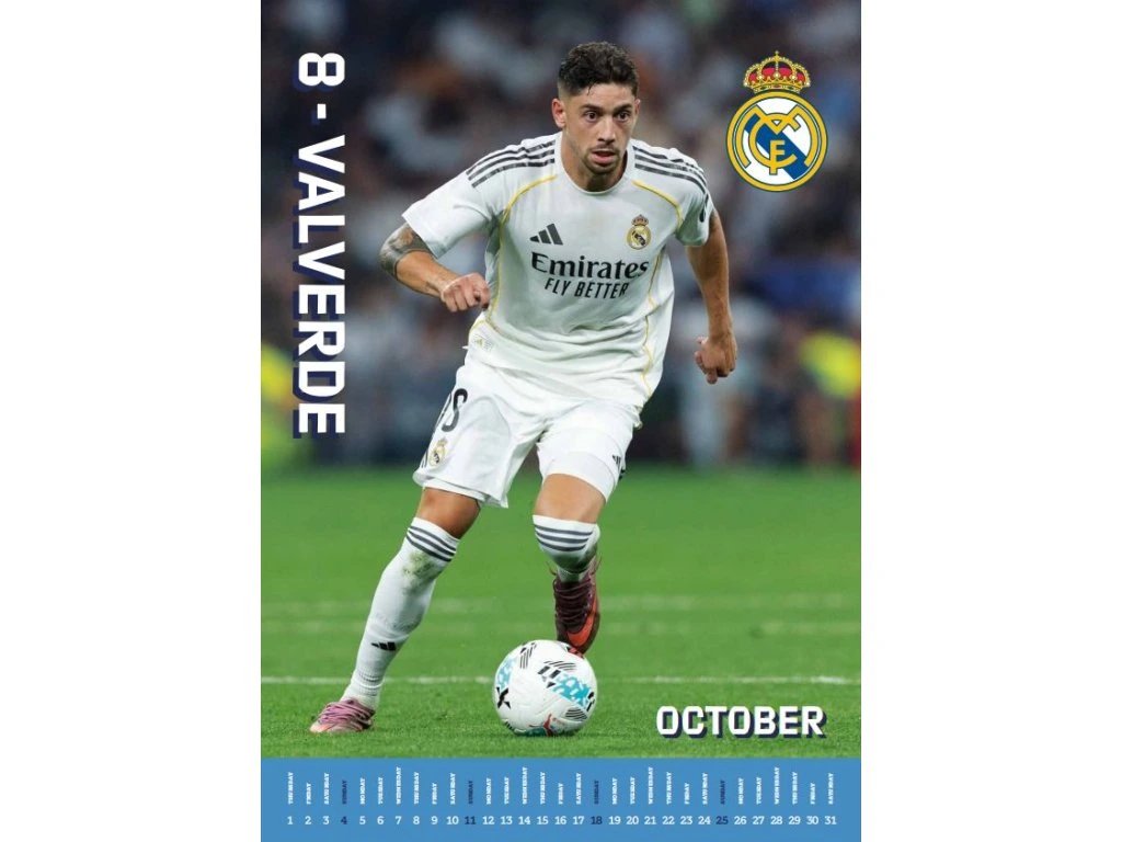 Oficiální produkt - fotblový kalendář z katalogu zboží na rok 2026 s grafikou fotbalového klubu FC Real Madrid.