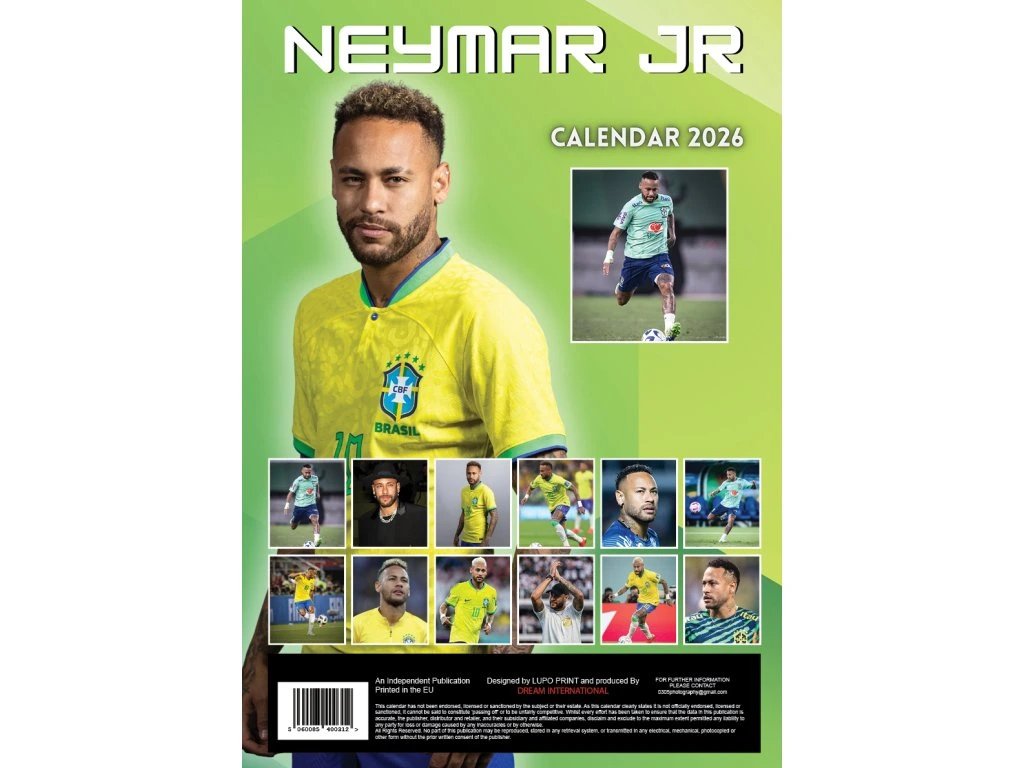 Oficiální produkt - nástěnný dvanáctiměsíční kalendář fotbalisty Neymar na rok 2026.