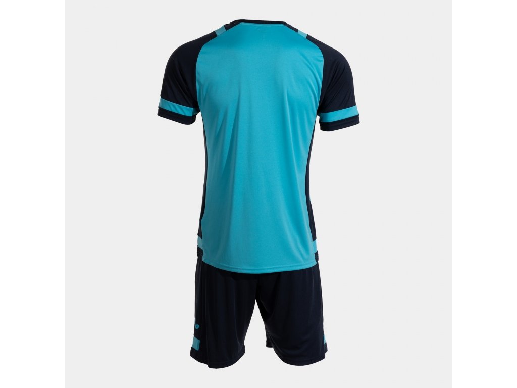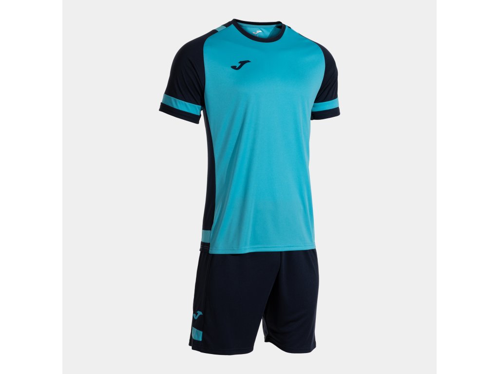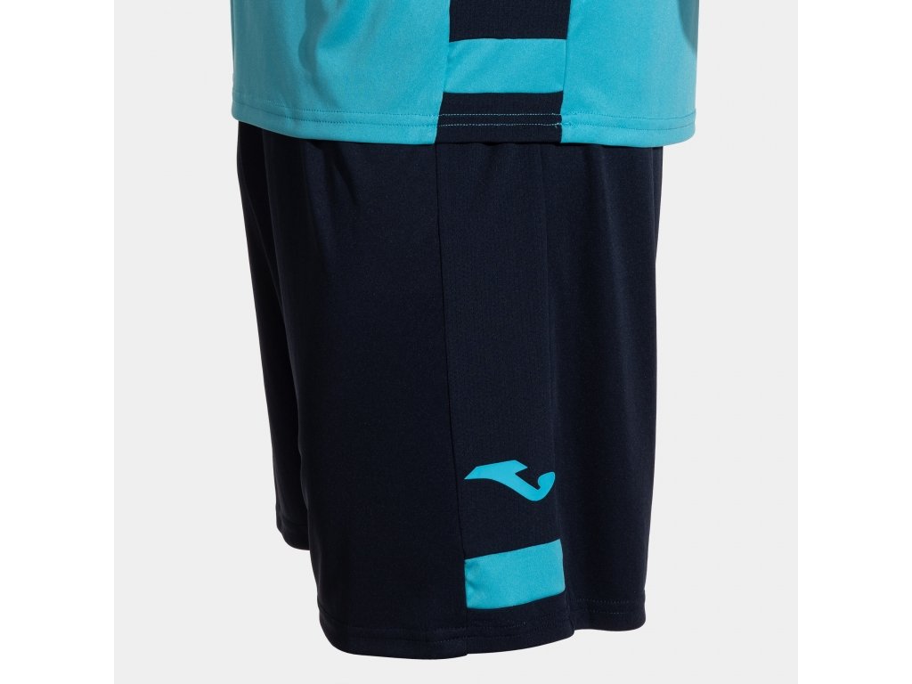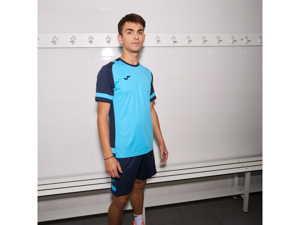 Dres s krátkým rukávem má kulatý výstřih. Boky jsou vyrobeny ze síťoviny, která poskytuje vynikající ventilaci, která pomáhá udržet vaši pokožku v chladu a suchu i během intenzivního tréninku. Na druhou stranu, šortky, ideální pro širokou škálu sportů, mají systém dvojitého nastavení, který zahrnuje elastický pas a vnitřní stahovací šňůrky, což umožňuje individuální a bezpečné uchycení. Boky šortek jsou navrženy se síťovinou pro zvýšení prodyšnosti.