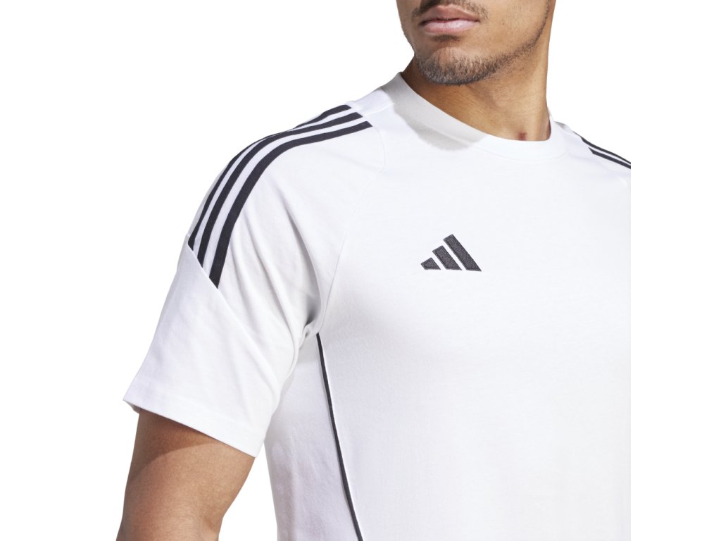 Dej do fotbalového tréninku maximum. A až budeš mít dotrénováno, dopřej si stylový relax v tomto měkkém tričku. Je součástí sportovní kolekce adidas Tiro 24. Zdobí ho logo se 3 proužky na hrudi a 3 proužky na ramenou. Tento produkt obsahuje bavlnu z recyklované příze Better Cotton. K získávání bavlny Better Cotton se využívá zpracovatelsko-dodavatelský řetězec, který funguje na principu látkové bilance. Bavlna Better Cotton není v koncových produktech fyzicky dohledatelná.